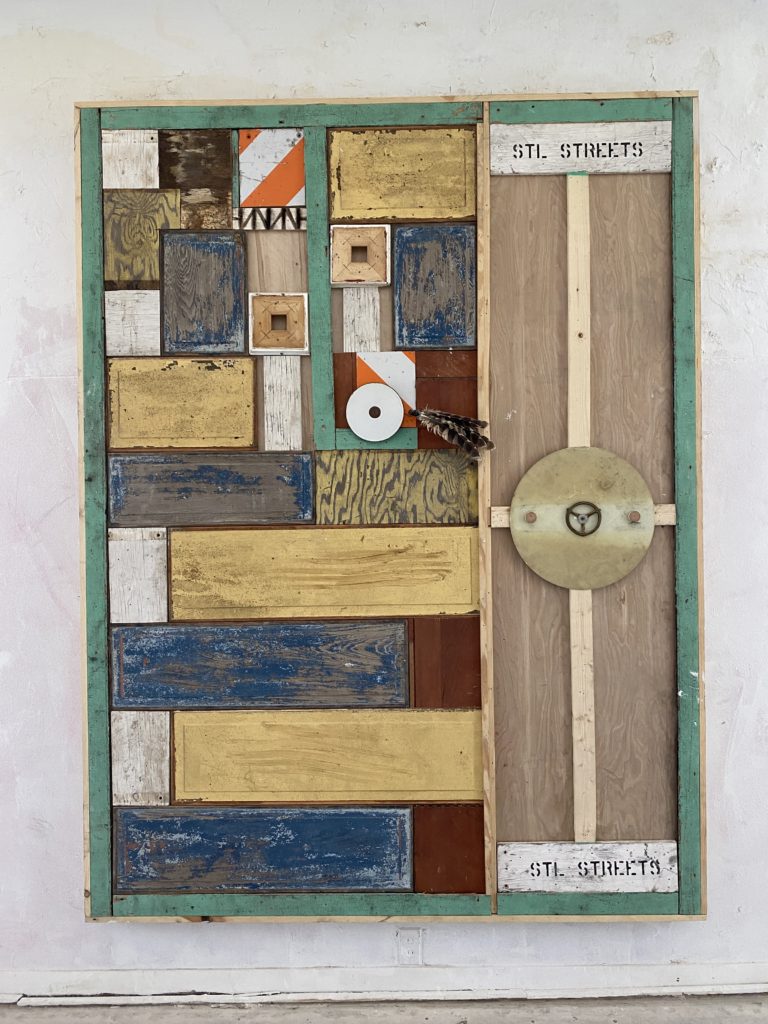 Robert E. Green’s artistic practice combines physical artmaking (assemblage, sculpture, painting, photography, and video), with acts of social justice that take the form of cultural festivals and events, creating a kind of “Gesamtkunstwerk.” His works and actions celebrate Black Pride and foster economic success within the Black community. Green’s artistic practice has also included the rescue and collection of African/African-American historical and cultural artifacts. He uses the collection and the community events he organizes as catalysts for education and the advancement of Black Pride. The rescue and renovation of the once stately 1883 home at 2205 Saint Louis Avenue extends this practice. The building, which he envisions becoming a neighborhood cultural center, as well as the act of acquisition, and its physical renovation– much of the work which Green did himself during the height of the Pandemic– is all part of his art practice and mission to uplift and renew the landscape in and around his community. Recipient of an artist grant from the RAC, Green has also shown his work at The Sheldon Art Galleries, 10th Street Galleries, the Griot Museum, 14th StreetArt Gallery, and Webster University, among others.