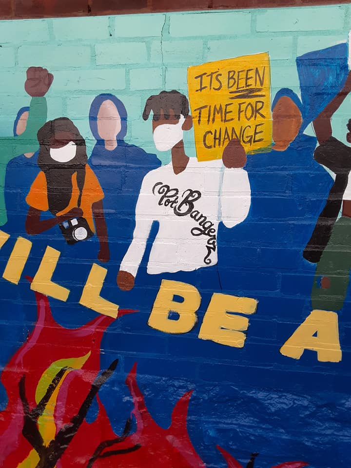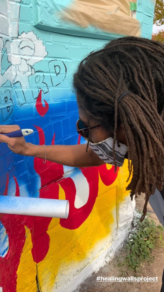 Photos of first community mural at Arthouse St. Louis, November 2020